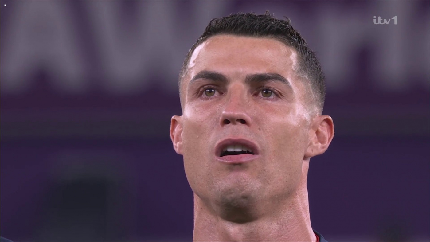 Cristiano Ronaldo’s tears while chanting the anthem ?#PORGHA | #FIFAWorldCup