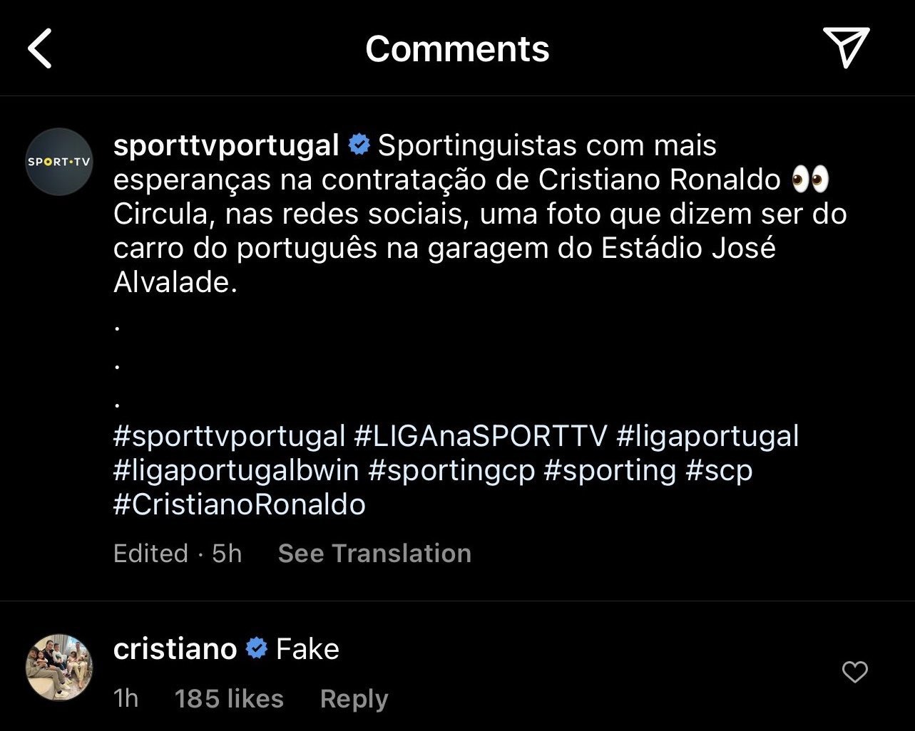 Në postimin e mediumit në rrjetin social Instagram, Ronaldo e ka quajtur si lajm të rremë atë postim./arbresh.info/