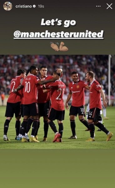 “Le të shkojmë Manchester United”, ka shkruar Ronaldo në një foto të publikuar në “Instagram”, në të cilën shihet ai dhe disa shokë të skuadrës.