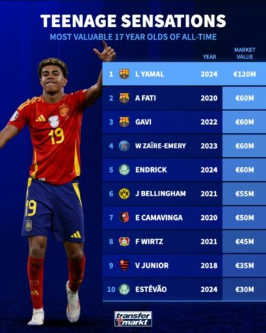“Yamal ka thyer shumë rekorde dhe e gjithë bota e njeh atë. Lojtari më i mirë i garës, asistuesi më i mirë. 17-vjeçar, ka thyer rekorde të mëdha dhe ka bërë një kontribut të rëndësishëm në titullin e Euro-s, veçanërisht në gjysmëfinale dhe finale”, ka thënë Tobias Blaseio, ekspert i Transfermarkt.