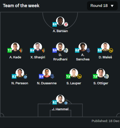 Gjithashtu edhe për “Shaqën” pati vend në formacionin ideal të javës së 18-të nga SofaScore.