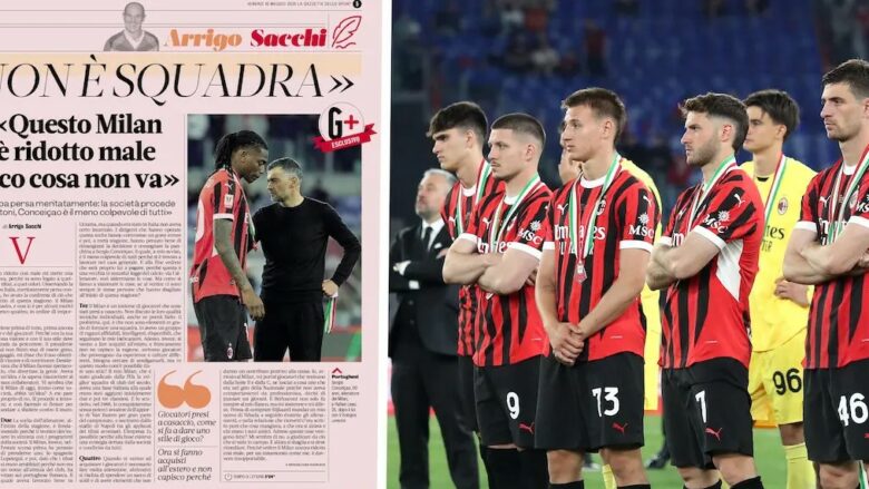 Ish-trajneri i Rossonerëve, Sacchi, analizoi sezonin e dobët të ekipit kuqezi, duke e filluar rubrikën e tij duke argumentuar se klubi nuk ka pasur “asnjë ide”, tek vendimet për trajner, lojtarët që nuk formojnë një ekip dhe gabimet në ‘mercato’.