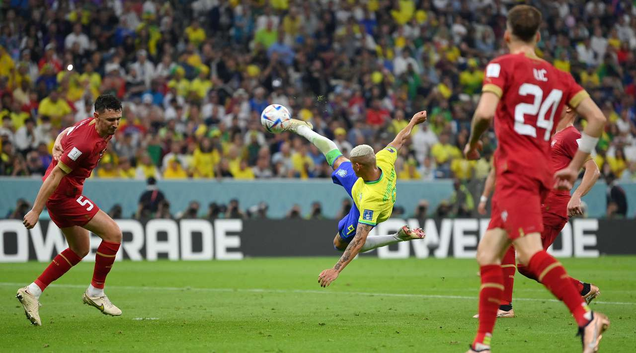 Sërish i asistuar nga Vini Jr, Richarlison tregoi një teknikë të jashtëzakonshme dhe në mënyrë akrobatike e shënoi golin më të bukur deri më tani në këtë turne (73’).