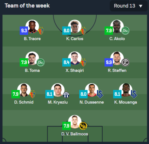 Xherdan Shaqiri pati performancë fantastike me Baselin ku edhe bëri një asistim andaj këtë javë ka notën 8.4 dhe ka zënë vend në formacionin e javës.