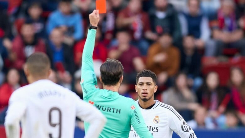 Komiteti i Garave ka konfirmuar një pezullim për yllin e Real Madridit, Jude Bellingham, pasi protestat e tij i dhanë atij një karton të kuq gjatë barazimit 1-1 me Osasunan. Reprezentuesi anglez do të mungojë në dy ndeshje.