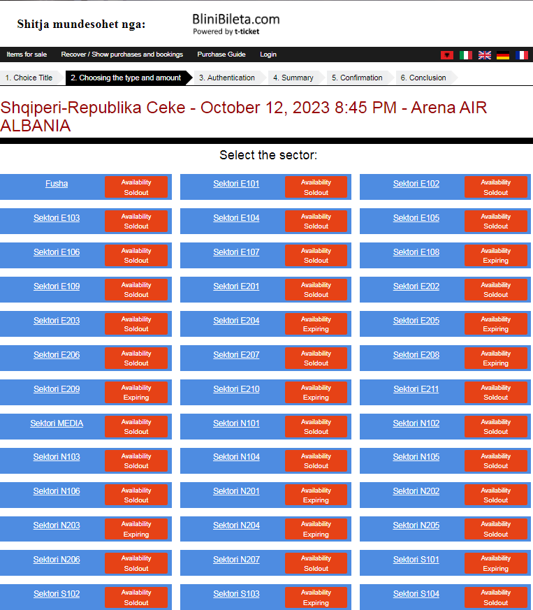 Biletat për ndeshjen që zhvillohet më 12 tetor në stadiumin “Air Albania” në Tiranë janë shitur brenda pak orëve kur kanë dal në shitje të premten mbrëma.