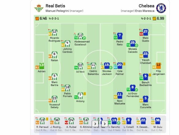 Chelsea ishte skuadër më e mirë dhe mori notën e përgjithshme 6.99, ndërsa Real Betisi u vlerësua me 6.46.