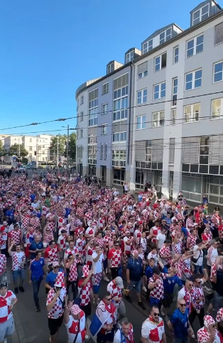 Para fillimit të ndeshjes një video e publikuar nga faqja e zyrtare e Euro 2024, në rrjetin social Facebook, shihen tifozët kroat duke marshuar në qytetin e Leipzigut.