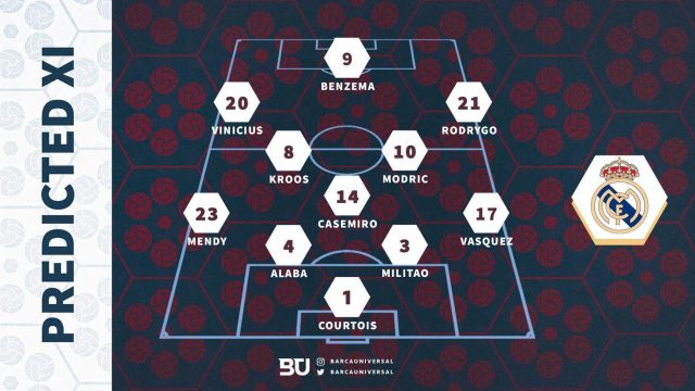11-shja e parashikuar e Real Madrid: Courtois; Vazquez, Militao, Alaba, Mendy; Modric, Casemiro, Kroos; Rodrygo, Benzema, Vinicius./Arbresh.info