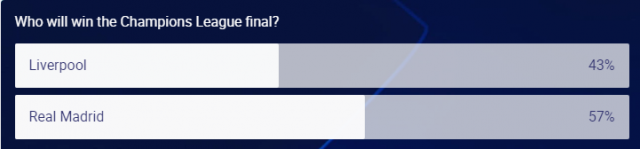 Në anketën për ndeshjen e sontme, 57% e votuesve deri më tani mendojnë se Real Madridi do të shënojë fitore.