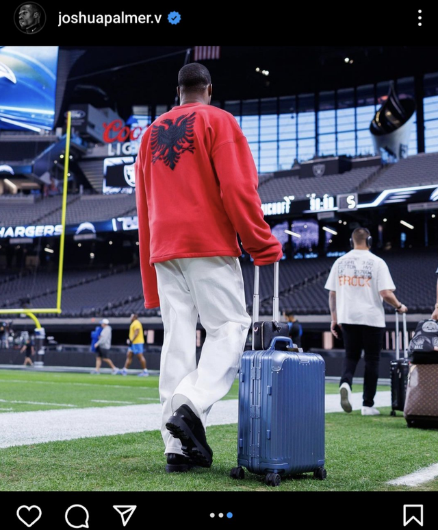 Palmer është një futbollist i suksesshëm i “Los Angeles Chargers” në NFL Liga Kombëtare e Futbollit në SHBA. Nuk dihet nëse Joshua Palmer ka bërë një “fashion statement” apo e lidhë diçka më shumë me Shqipërinë, ashtu si bashkatdhetari i tij kanadez Drake. Por ajo që dihet, është që kjo pamje kënaq sytë dhe zemrat e shqiptarëve.
