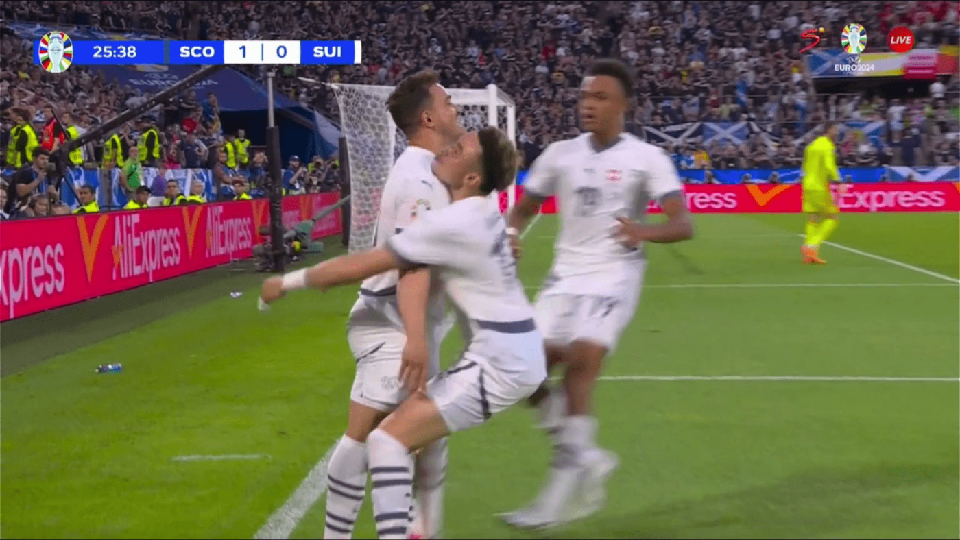 Në minutën e 26’ Xherdan Shaqiri realizoi një super gol duke bërë që Zvicra të barazojë./Arbresh.info/