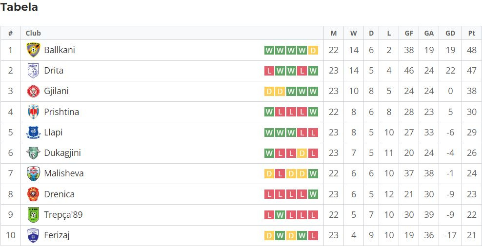 Drita me fitoren 2:0 kundër Llapit i është afruar në një pikë Ballkanit, i cili të dielën (nesër) luan kundër Prishtinës në udhëtim, shkruan lajmi.net.