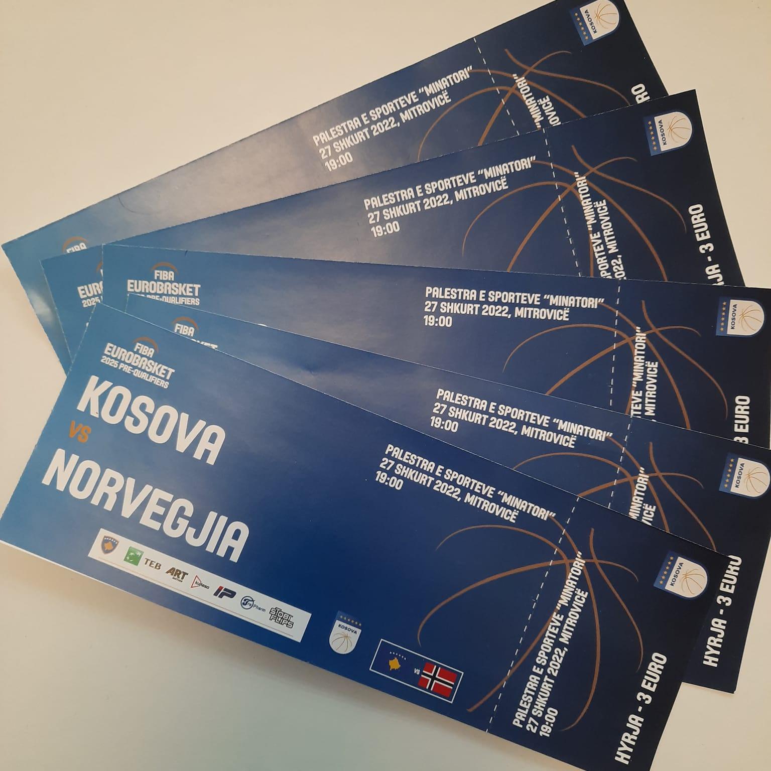 Federata e Basketbollit e Kosovës (FBK) ju njofton se të dielën (27 Shkurt) nga ora 15:00 do të dalin në shitje biletat për ndeshjen Kosovë-Norvegji.