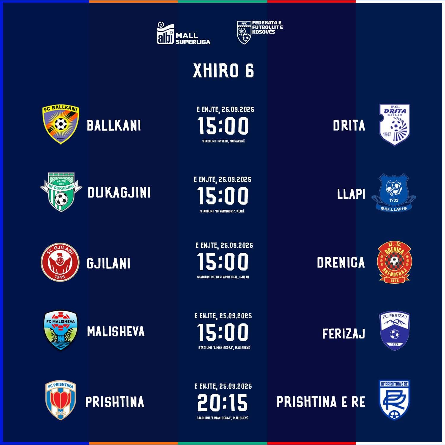 Xhiroja mbyllet me derbin lokal mes Prishtinës dhe Prishtinës së Re. Ky takim luhet nën ndriçimin e reflektorëve me fillim nga ora 20:15 në stadiumin “Fadil Vokrri”./Arbresh.info