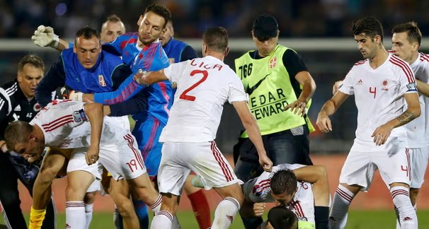 Me siguri fytyrat ranë në pëllëmbë në federatat e të dy vendeve në dhjetor të vitit të kaluar, kur shorti i kualifikueseve për Kupën e Botës 2026 i vendosi përballë njëra-tjetrës. U ngritën vetulla në arenën ndërkombëtare, por nuk kishte asgjë që i pengonte të përballeshin sërish: pavarësisht një historie të gjatë dhe të përgjakshme, plagët më të freskëta të së cilës janë nga lufta në Kosovën me shumicë etnike shqiptare, kombet nuk janë në konflikt aktiv. Asnjëri nuk kishte kërkuar të shmangte tjetrin. Ishte e pashmangshme që problemi i marrëdhënieve në kontekstin e futbollit të rishfaqej një ditë.