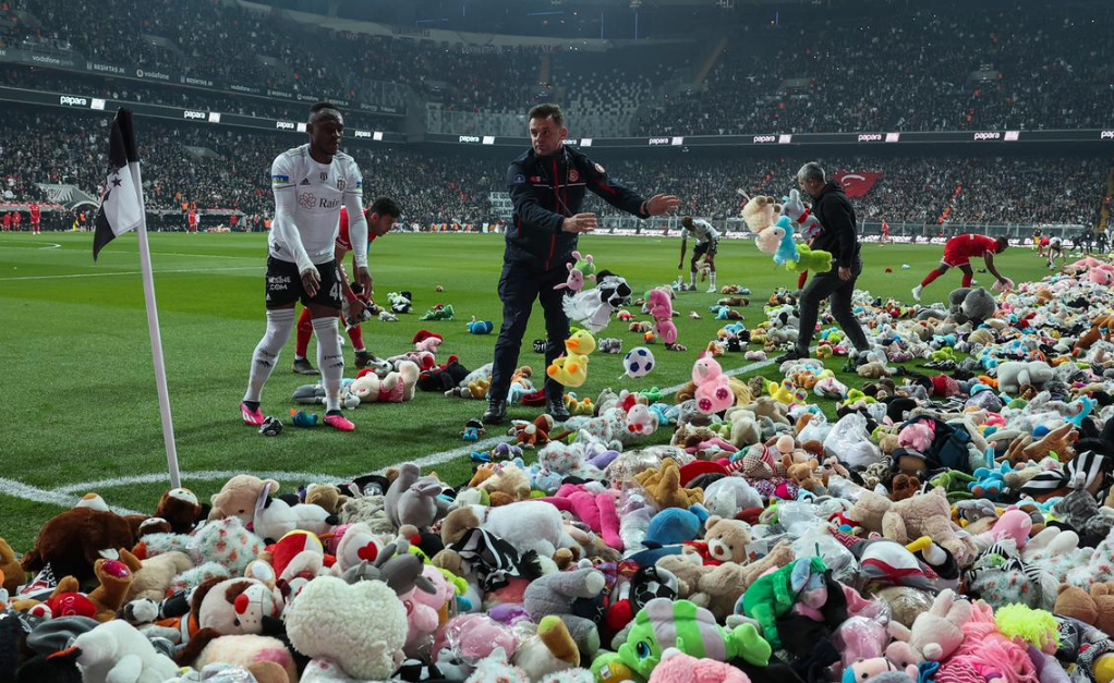 Para fillimit, klubi bëri homazhe për viktimat e tërmeteve dhe mbështetësit hodhën mijëra lodra dhe shalle në fushë, në një gjest mbështetjeje për fëmijët e prekur nga fatkeqësia.