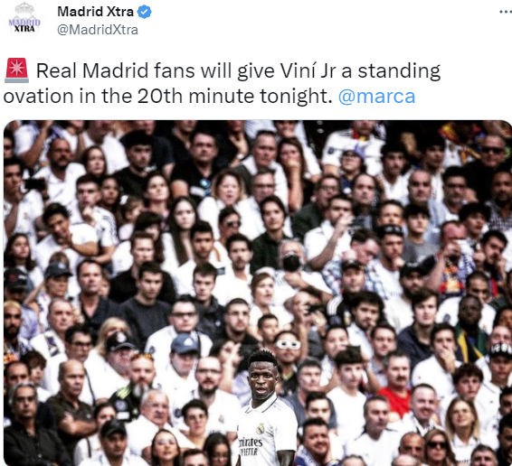 Sipas ‘Marca’, tifozët e Real Madridit do ta duartrokasin Vinícious Jr në minutën e 20-të sonte.