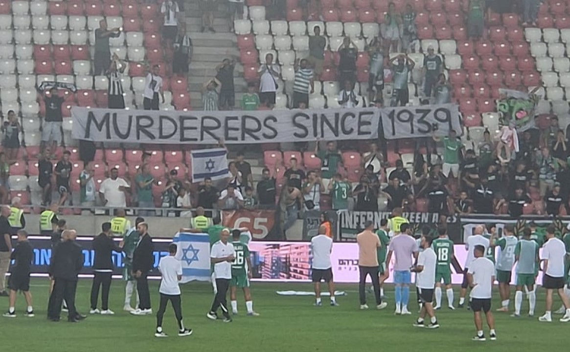Konkretisht, pas ndeshjes, tifozët e Maccabit nxorën në pah një slogan me përmbajtje kontraverse në tribunat e tyre.