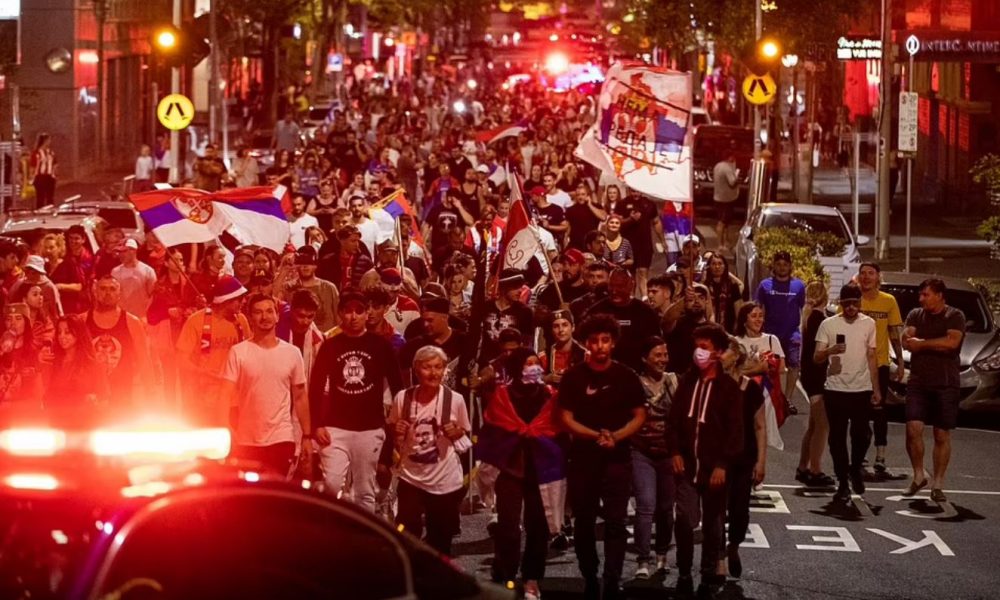 Tifozë serbë që po protestonin në Australi në mbështetje të Novak Djokovicit gjatë seancës gjyqësore, e cila mori vendim në favor të tenistit serb karshi autoriteteve australiane që ia kishin refuzuar vizën 34-vjeçarit për pjesëmarrje në Australia Open sepse ai nuk ishte i vaksinuar kundër Covid, kanë shkaktuar trazira në rrugë.