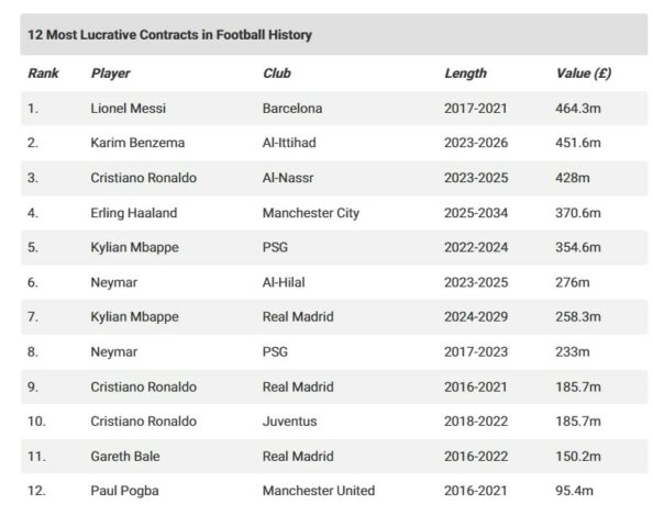 Duke marrë parasysh këto paga jashtëzakonisht të mëdha që po dhurohen në futboll, tashmë është zbuluar edhe lista me 12 kontratat më të mëdha në histori të futbollit.