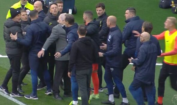 Trajneri i Spurs, Cristian Stellini dhe trajneri i Brighton, Roberto de Zerbi, u përjashtuan për shkak të debatit gjatë ndeshjes.