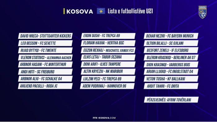 Përzgjedhësi i Kombëtares së Kosovës U21, Afrim Tovërlani e ka publikuar listën e futbollistëve që do t’i ketë në dispozicion për kampin e radhës përgatitor në Antalia.