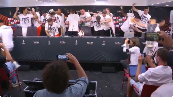 Celebrations in Frankfurt’s post-match news conference after their Europa League final win over Rangers ? pic.twitter.com/5sU7KgQSOw
