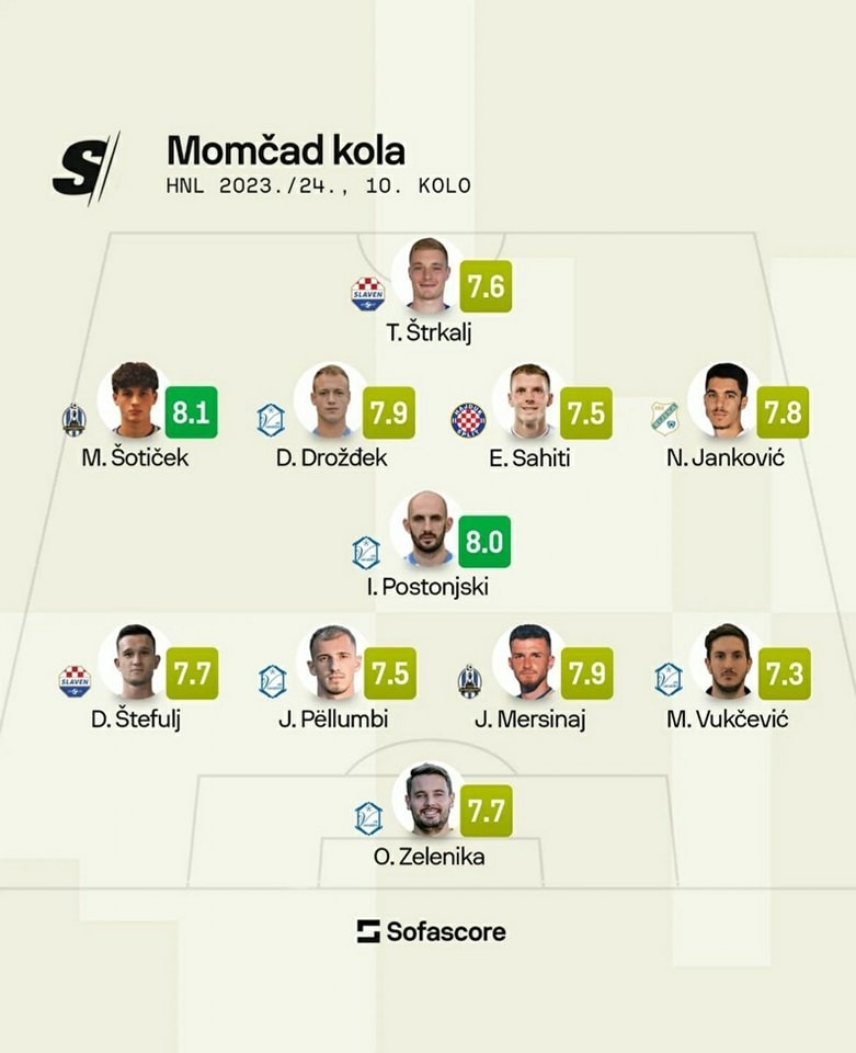 Fundjava që lamë pas ishte shumë pozitive dhe për shqiptarët që luajnë në Kroaci. Tre lojtarë shqiptarë janë përfshirë në formacionin e javës së 10-të. Jorgo Pëllumbi, Jon Mersinaj dhe Emir Sahiti janë përfshirë në 11-shen më të mirë të javës në elitën e futbollit kroat në javën që lamë pas.