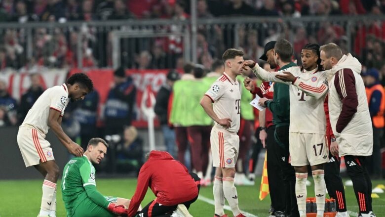 Portieri i Bayern Munichut, Manuel Neuer, do të jetë jashtë fushës për momentin për shkak të një çarje të fibrave muskulore në pulpin e djathtë, të pësuar pas një festimi goli gjatë fitores 3-0 të klubit në Ligën e Kampionëve ndaj Bayer Leverkusen.
