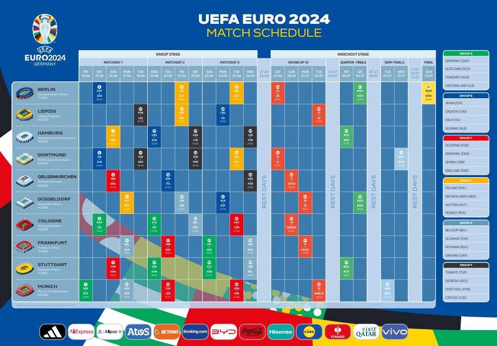 Turneu do të nisë zyrtarisht më 14 qershor në Mynih dhe do të përfundojë me finalen e shumëpritur në Berlin më 14 korrik, transmeton Arbresh.info.