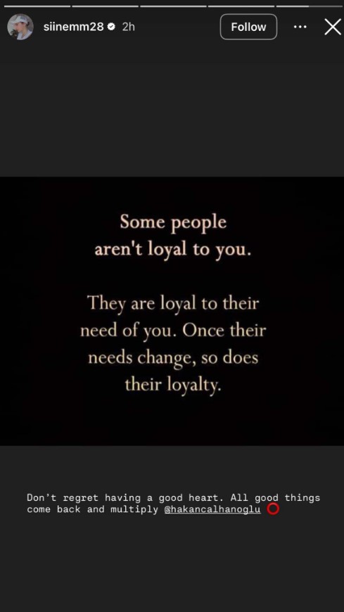 Përgjigja për Calhanoglun erdhi përmes bashkëshortes së tij të martën në mëngjes përmes një story në Instagram.