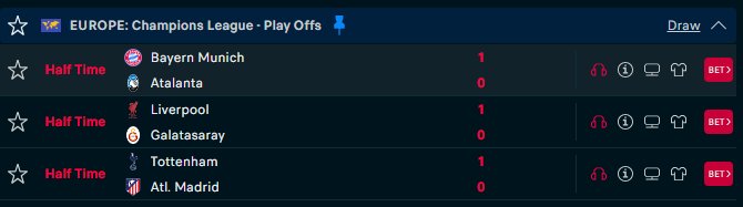 Ndërkohë përballjen tjetër në Londër, Tottenhami po ashtu po e fiton 1-0. Atje ndeshja e parë kishte përfunduar 5:2 në të mirë të Atleticos.