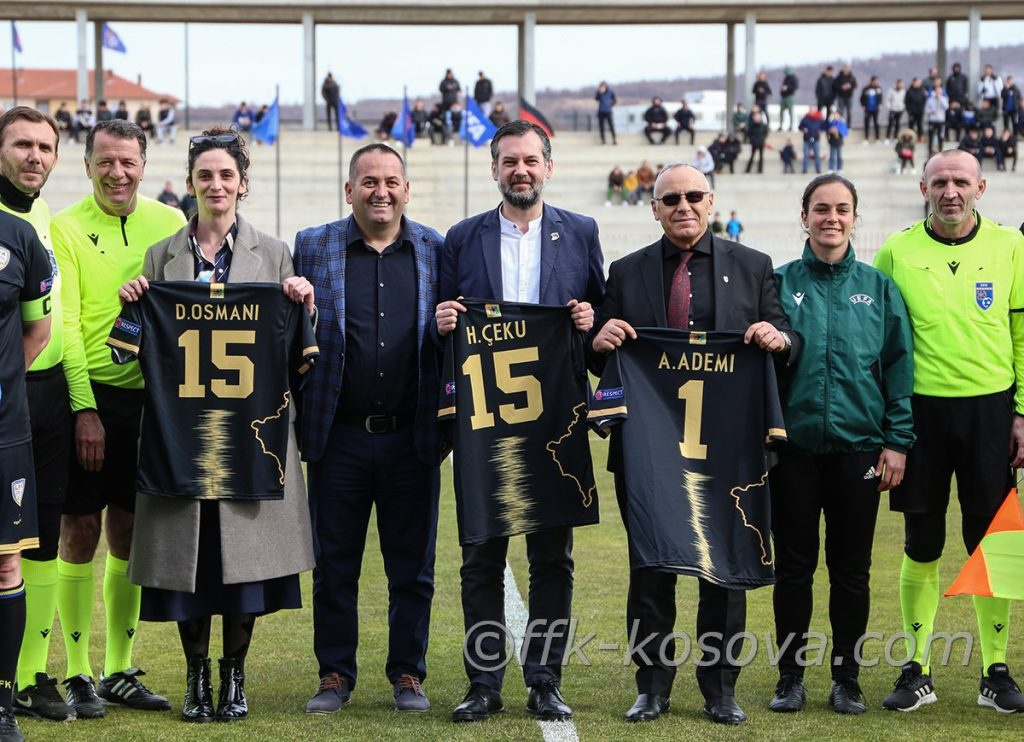 Ndërkaq, presidenti Ademi theksoi se për ditë të veçanta ftohen miqtë e veçantë. “Duke qenë se kjo ndeshje zhvillohet në kuadër të shënimit të 15-vjetorit të Pavarësisë së Kosovës, i kemi ftuar miqtë dhe njerëzit që na kanë ndihmuar në vazhdimësi. Ata me kontributin që kanë dhënë për ne gjithmonë do të jenë të mirëseardhur në vendin tonë“, është shprehur kreu i FFK-së. Ndërkohë, në emër të Ligës së Veteranëve të Futbollit të Kosovës, kryetari i saj, Enes Shosholli ka nderuar me fanella të veçanta ministrin Çeku, zv/ministren Daulina Osmani dhe presidentin Ademi.