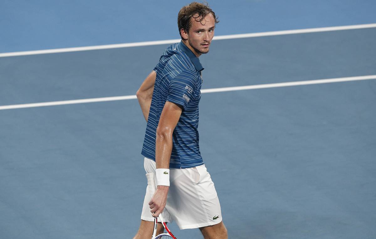 Daniil Medvedev of Russia looks back at teammates after defeating Diego Schwartzman of Argentina during their ATP Cup tennis match in Sydney, Thursday, Jan. 9, 2020. (AP Photo/Steve Christo)