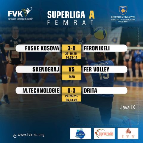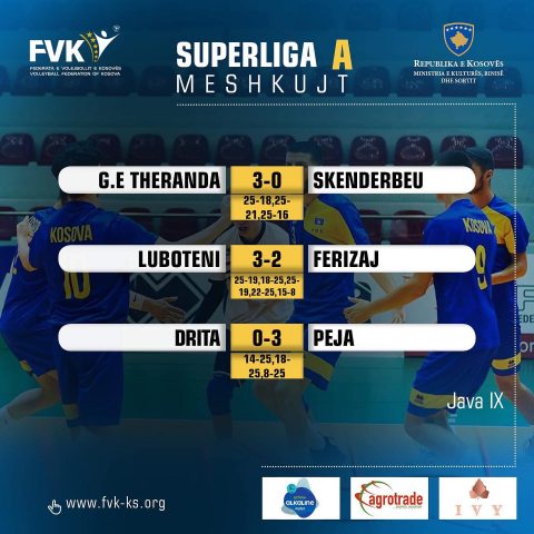 Të martën luhet përballja e fundit mes Skenderajt dhe Fer Volley. Në anën tjetër, te meshkujt, G.E Theranda ka mposhtur 3-0 Skenderbeun, Lubonteni 3-2 Ferizajn dhe Peja 0-3 Dritën.