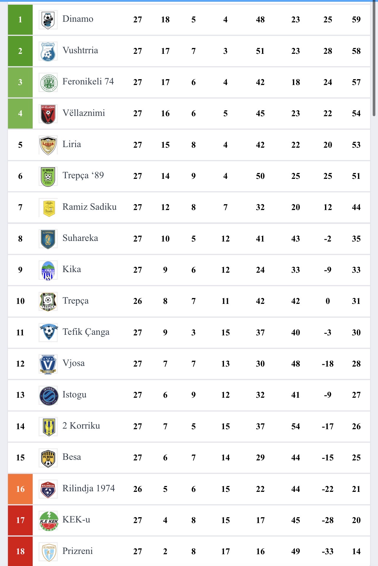 Pas kësaj fitore, Dinamo merr kryesimin e Ligës së Parë.