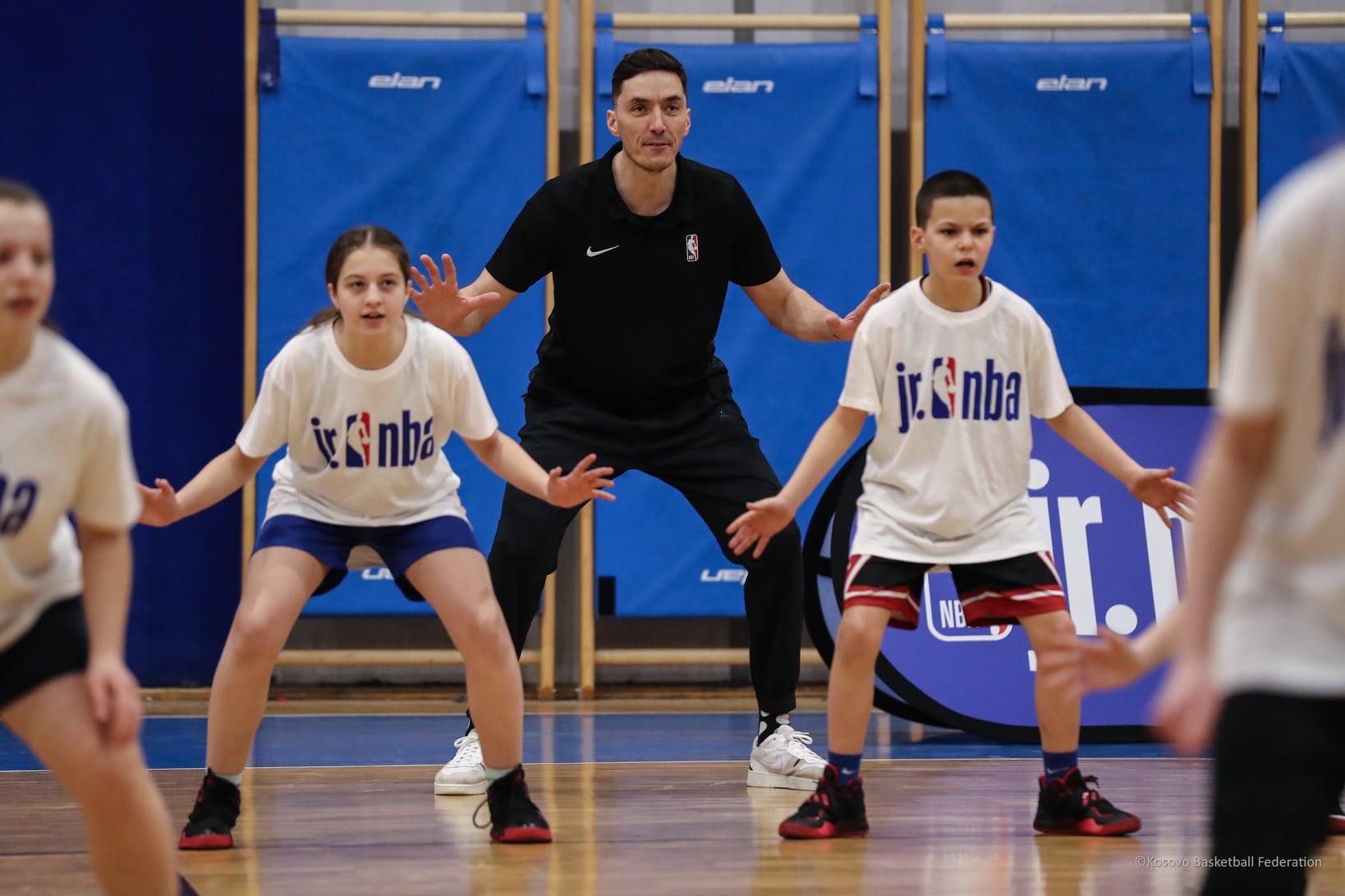 Jiri Welsch, ambasador i Junior NBA dhe ish basketbollist i NBA-së, si dhe Adrian Carrion, përgjegjës i Jr NBA për Kosovë pas takimit me drejtuesit e Federatës së Basketbollit të Kosovës kanë mbajtur një stërvitje me fëmijët kosovarë.