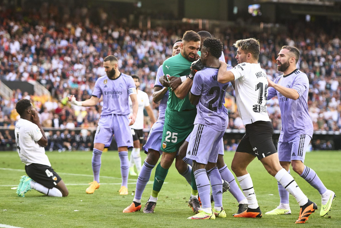 Pasi ndeshja u ndërpre për momentin për abuzim racist nga tribuna, tensionet u ndezën natyrshëm për Vinicius Jr, i cili u përjashtua me karton të kuq pasi u shfaq duke goditur Hugo Duro në një përleshje në kohën shtesë.