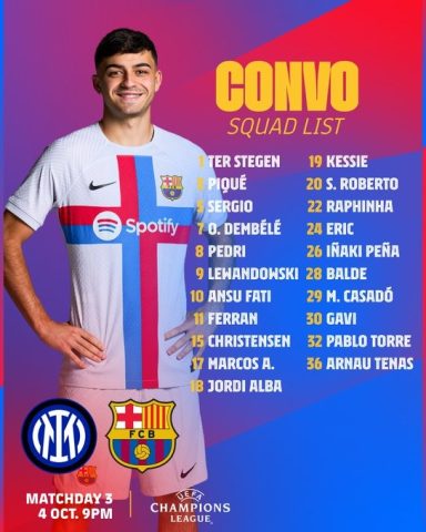 Nga dy ndeshje të zhvilluara në grup, Barcelona dhe Interi kanë nga 3 pikë të grumbulluara, pas fitoreve ndaj Viktoria Plzen dhe humbjeve ndaj Bayernit, e cila kryeson grupin me 6 pikë.