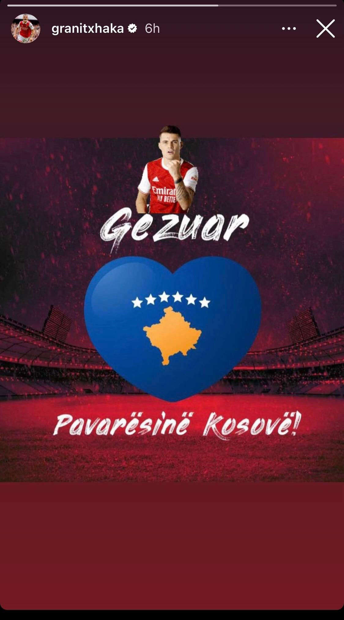 Xhaka, e ka postuar një foto në Instagram, me një mbishkrim: “Gëzuar Pavarësinë Kosovë.
