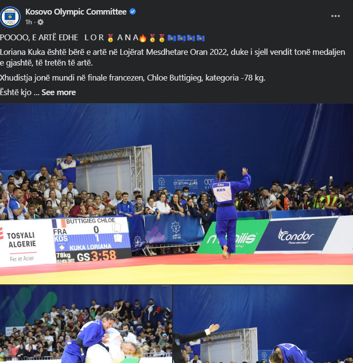 Loriana Kuka ka arritur t’i sjell një medalje tjetër të artë Kosovës në Lojërat Mesdhetare Oran 2022.