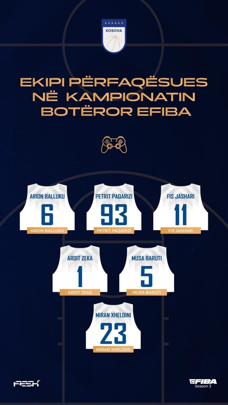 Në pjesëmarrjen e parë të ekipit tonë në Kampionatin Botëror të eFIBA season 3, kombëtarja jonë do të përbëhet nga këtë lojtarë: