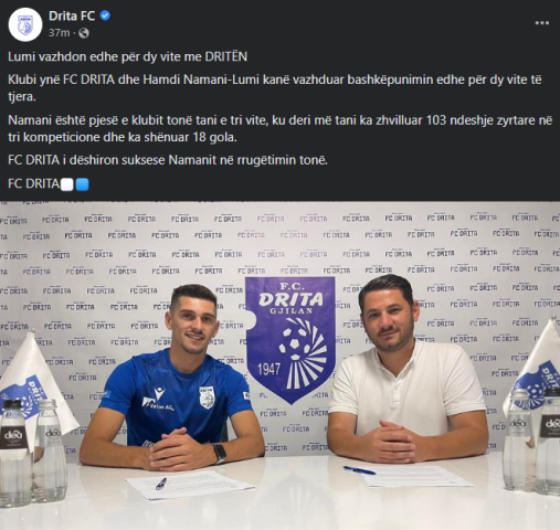 Skuadra nga Gjilani, KF Drita, ka rinovuar kontratën me yllin e skuadrës së tyre, Hamdi Namani i quajtur ndryshe Lumi.