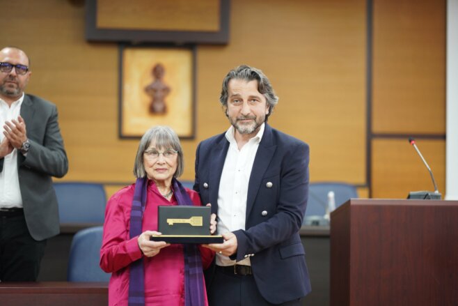Rama i dhuron Çelësin e Qytetit aktivistes së njohur serbe për të drejtat e njeriut Natasa...