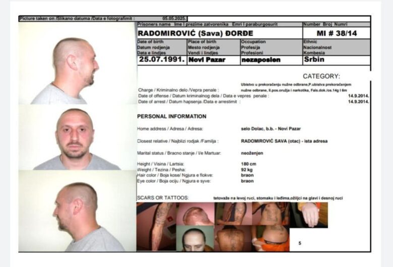 Arratisja e serbit nga burgu në Mitrovicë, arrestohet roja që dyshohet se e ndihmoi të ikte Gjorgje Radomiroviqin