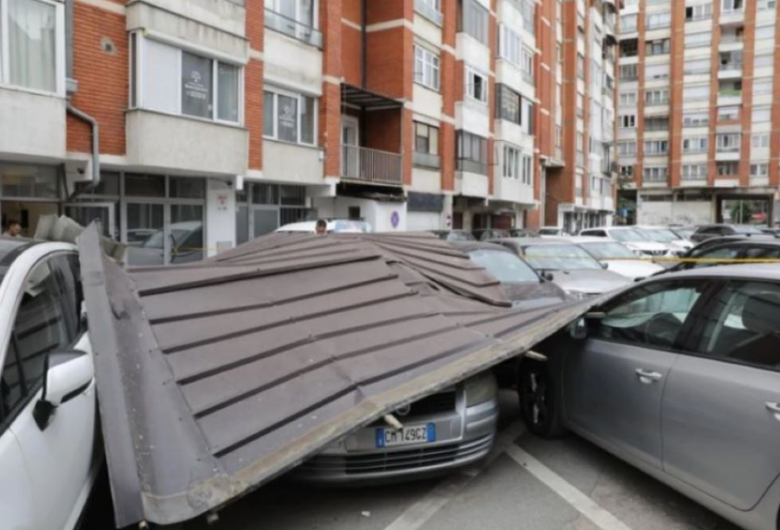 1764948940 - Bie çatia në një parking në “Pejton”, dëmtohen tri vetura