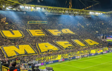 Protesta e tifozëve të Borussia Dortmund e cila u mbështet nga shumë tifozë të tjerë drejt...