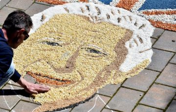 Artisti kosovar e krijon portretin e Mbretit Charles me grurë, oriz, fara e misër