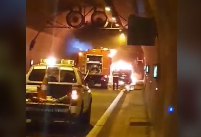 1770620805 - Digjet një veturë në tunelin e Kalimashit, momenti kur intervenojnë zjarrfikësit